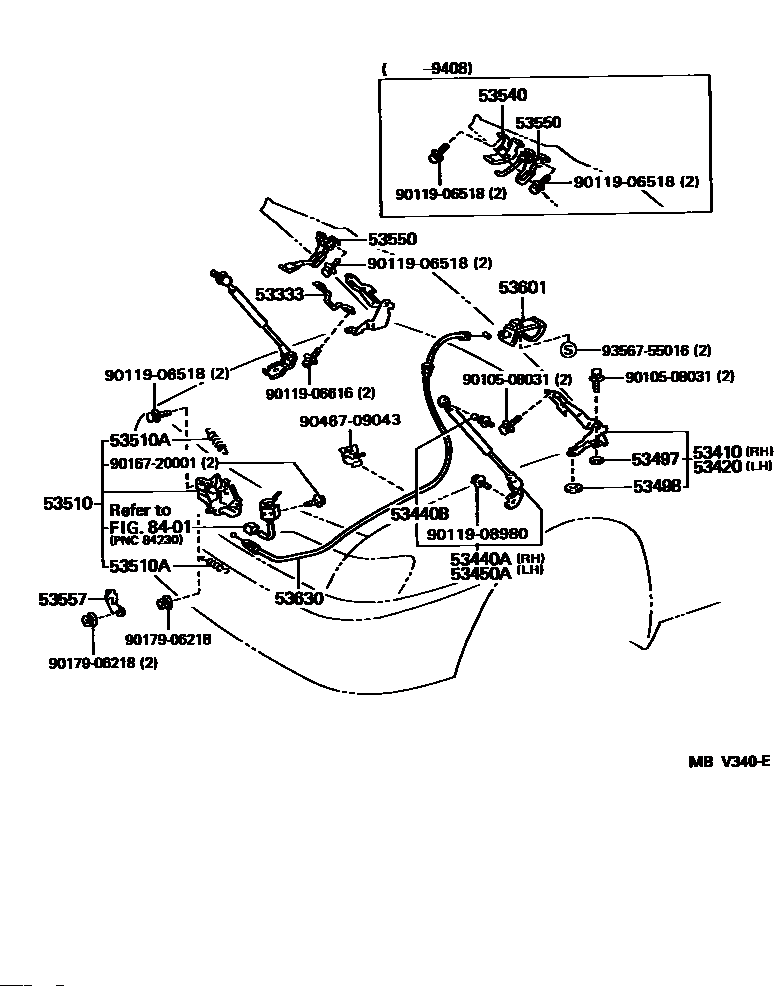 【53420】5342033010 HINGE ASSY, HOOD, LH