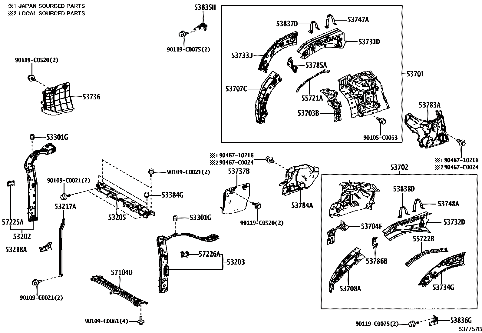 【53707C】537070E060 EXTENSION SUB-ASSY, FRONT FENDER APRON, FRONT RH