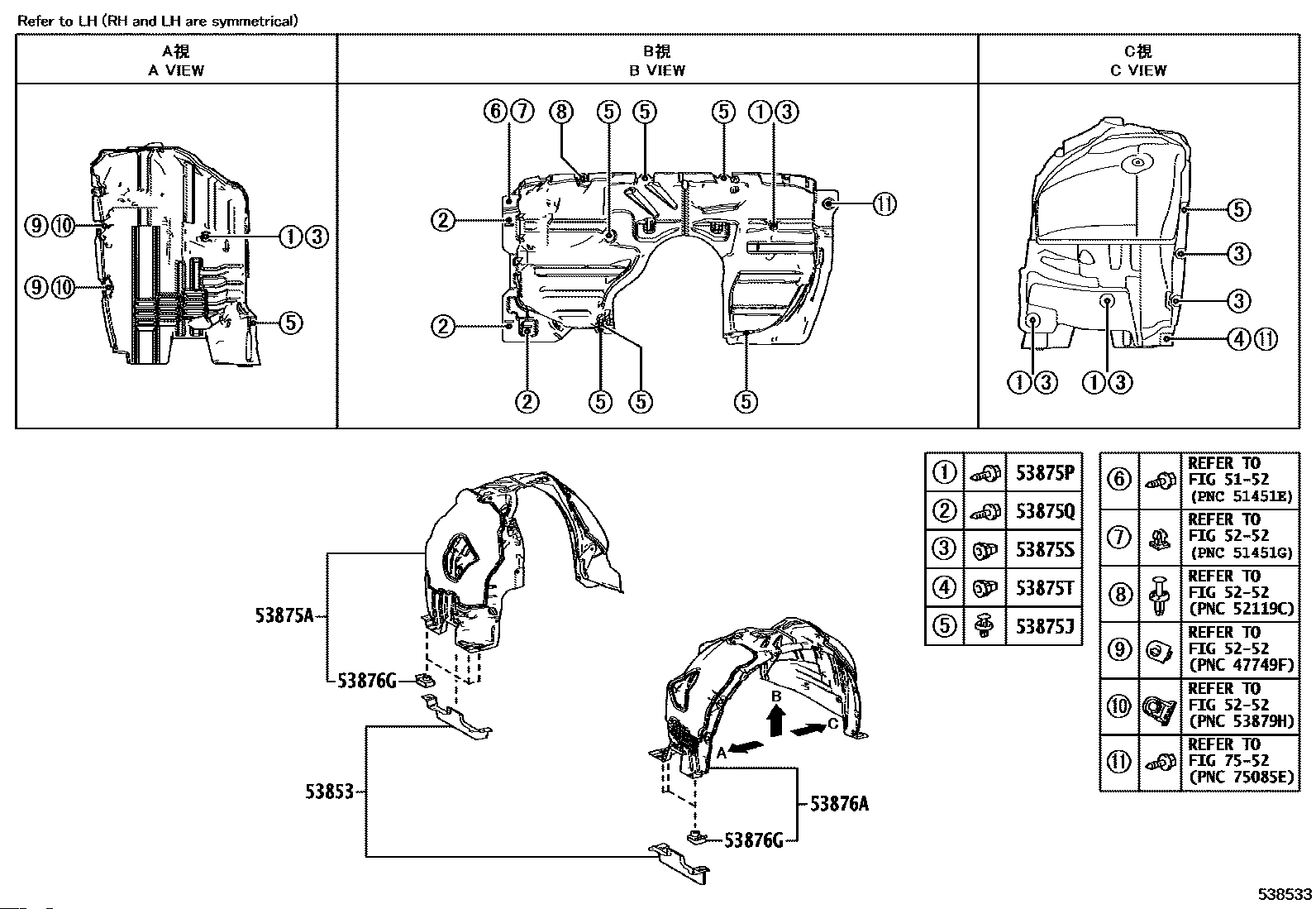 【53853】5385308030 Pad, front wheel opening extension, no.3