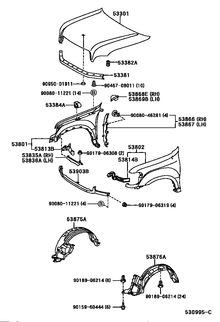 【53835A】5383534030 BRACE, FRONT FENDER TO APRON, RH