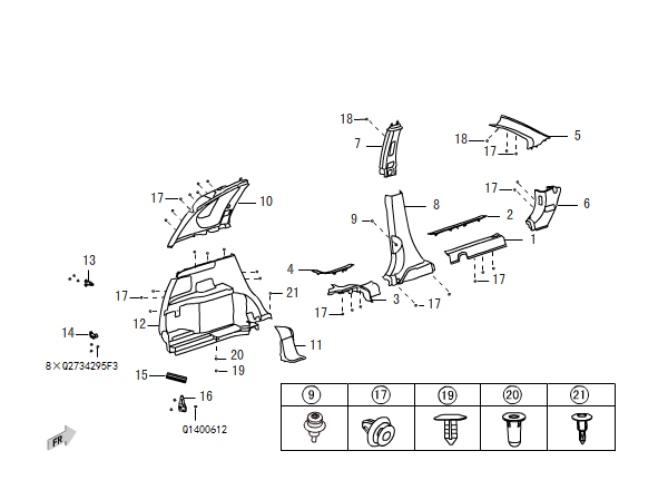 Protector assy-B pillar upr, rh