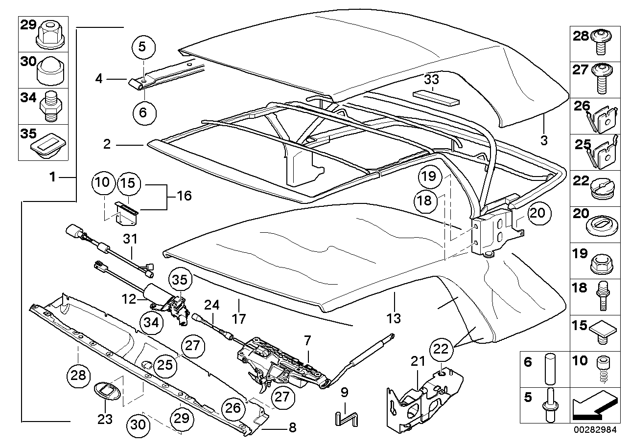 Fastening end folding roof lh