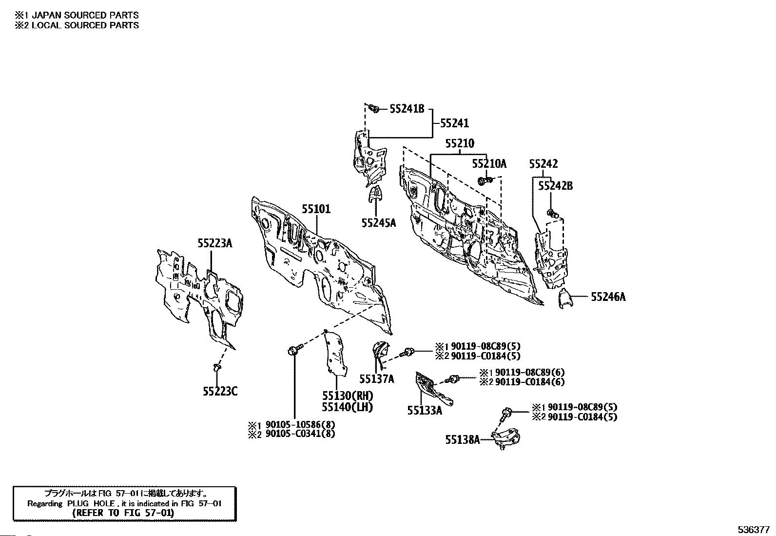 【55140】55132F4050 Reinforcement, dash panel, no.2