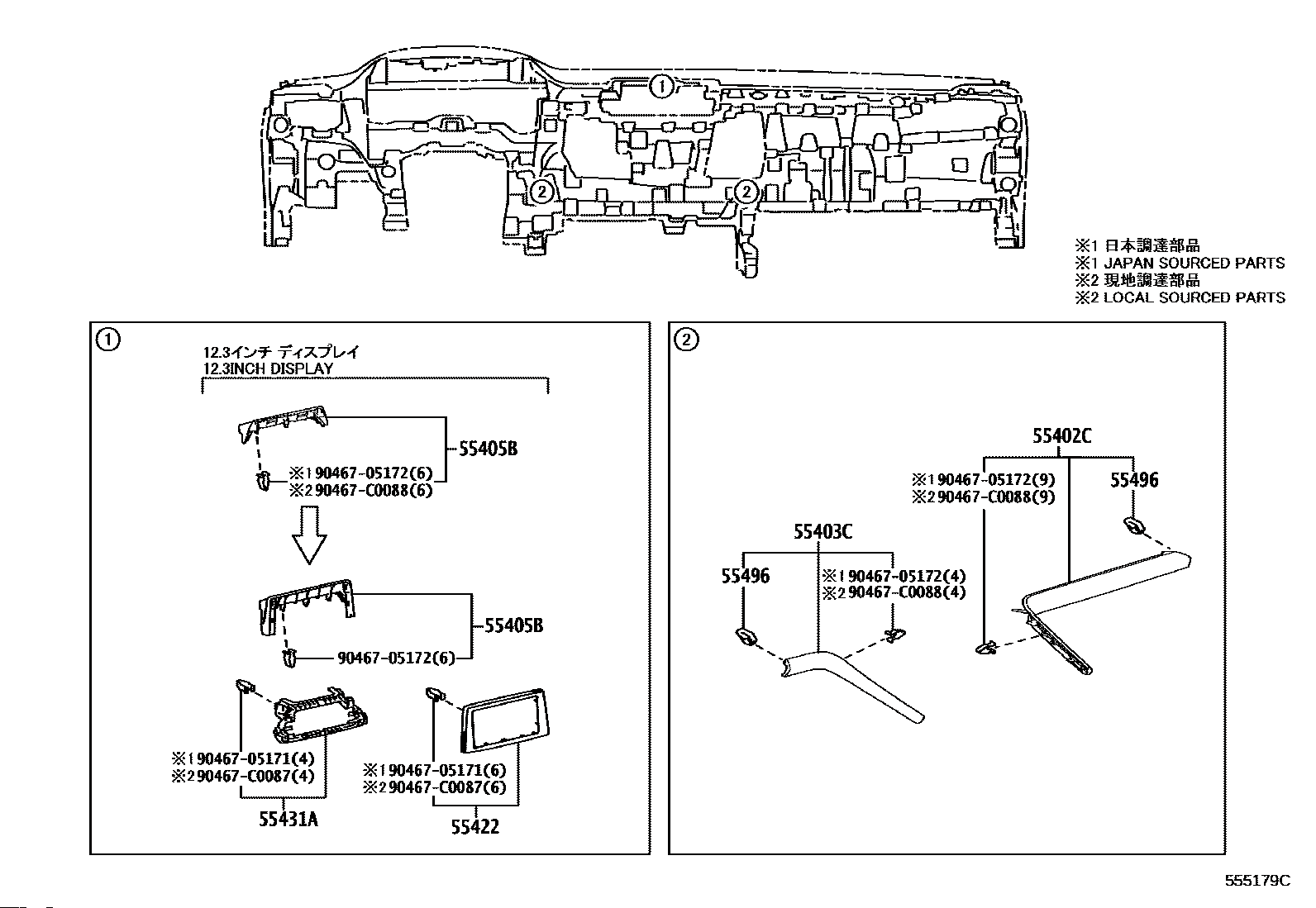 【55403C】5540308060C0 PAD SUB-ASSY, INSTRUMENT PANEL, LOWER LH
