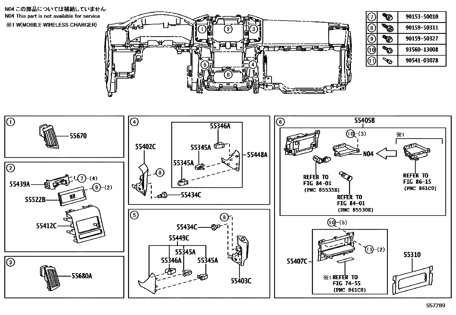 【55439A】5543960010 Retainer, instrument panel finish panel, no.3