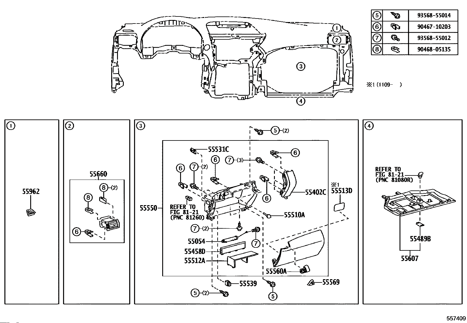【55607】5560748180 COVER SUB-ASSY, INSTRUMENT PANEL UNDER, NO.2
