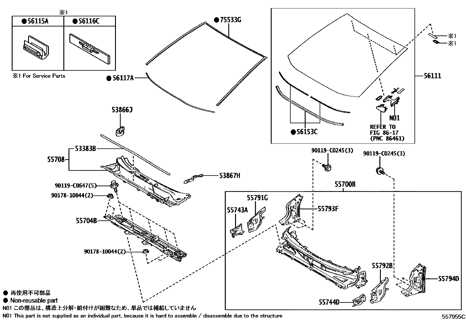 【56116C】5611622050 Stopper, windshield, no.2