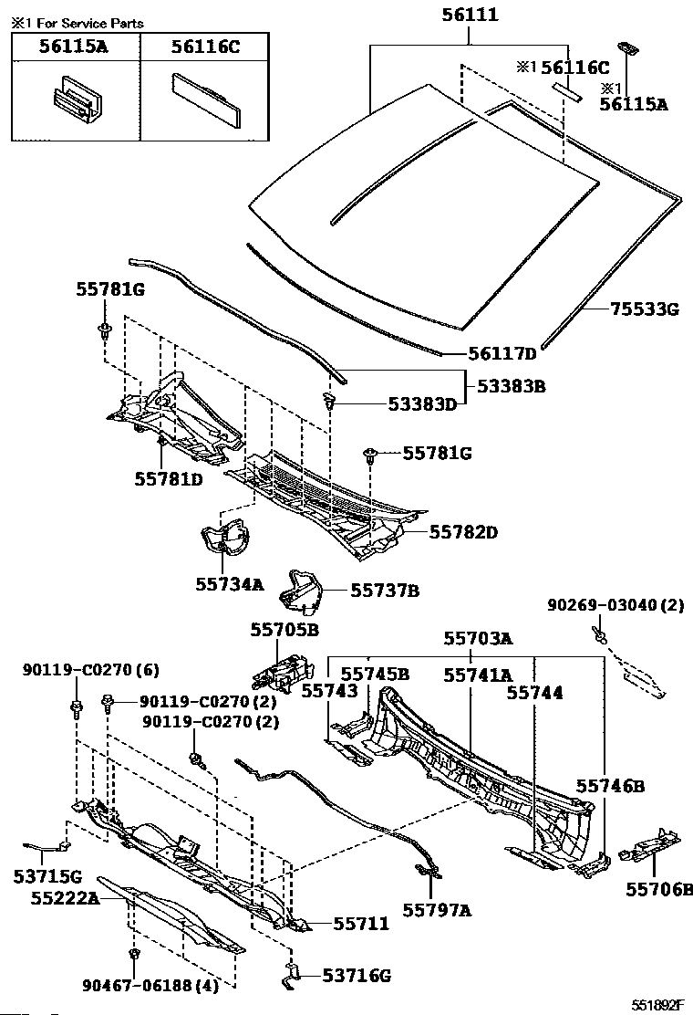 【55703A】5570302190 PANEL SUB-ASSY, COWL TOP, INNER