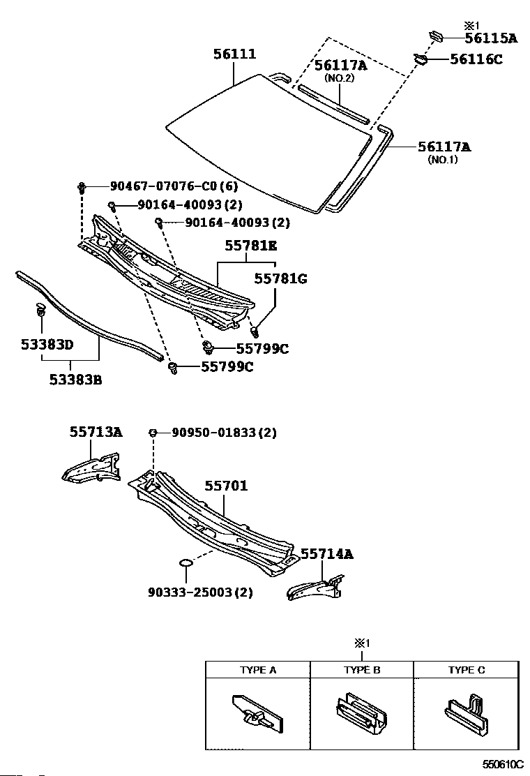 【56116C】5611622050 Stopper, windshield, no.2