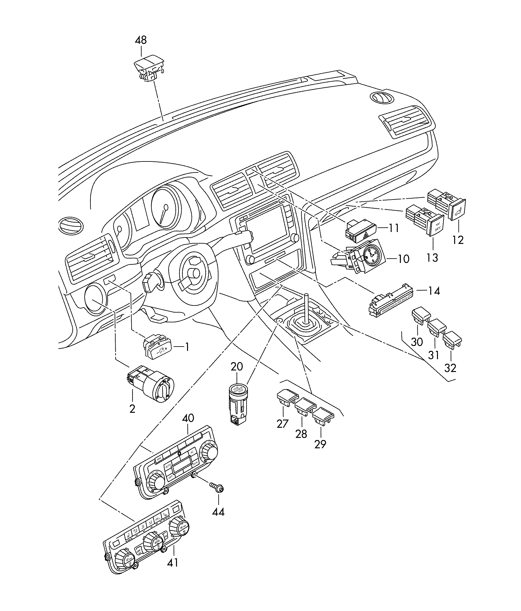 【13】1K0927121BREH Button, for tire monitor display mounting place glove box assy black/white