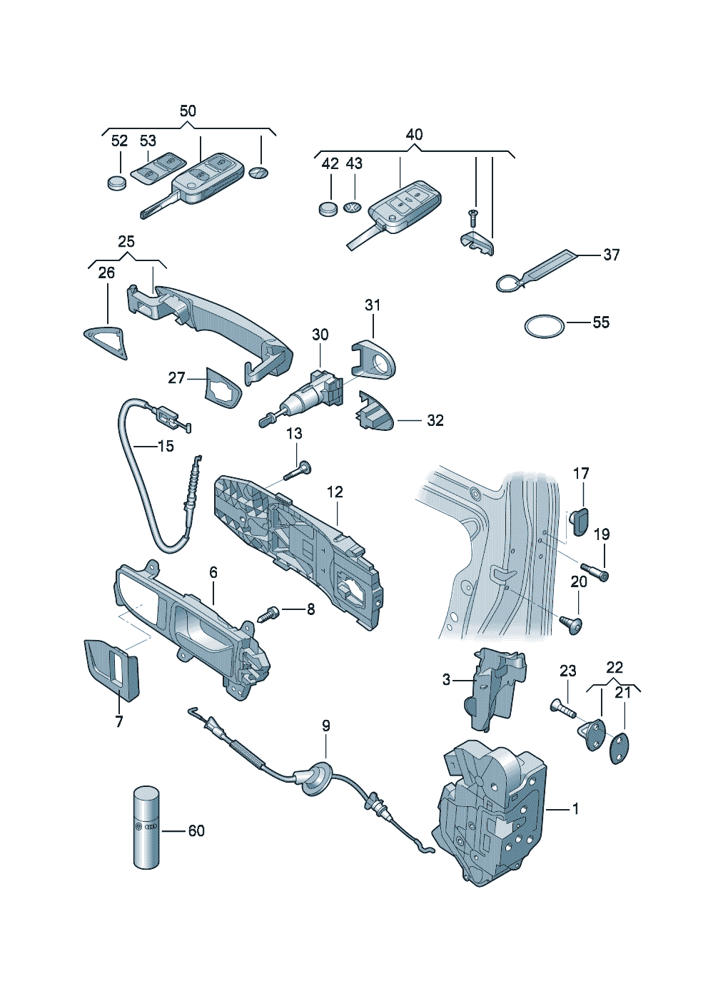 Cylinder set, for 1 set Handle & ign Sw assy Lock & key Contains: Be sure when order
