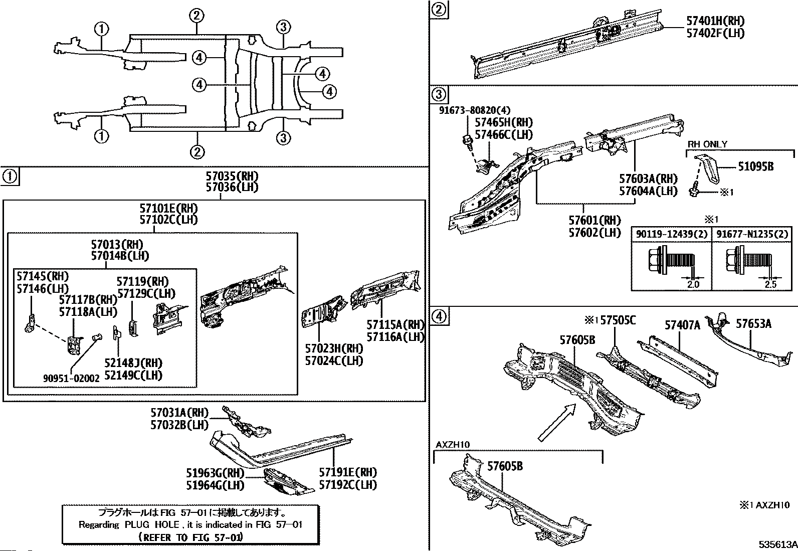 【57407A】5740733010 Member sub-assy, center floor