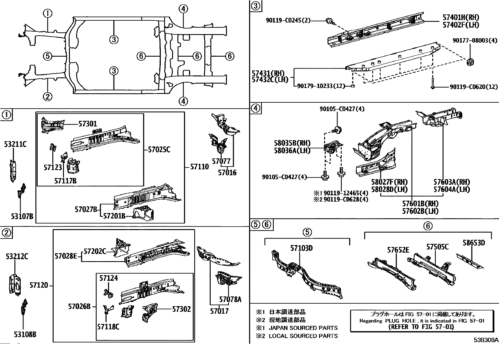 【57431】574310R040 Reinforcement, center floor panel, no.1 rh