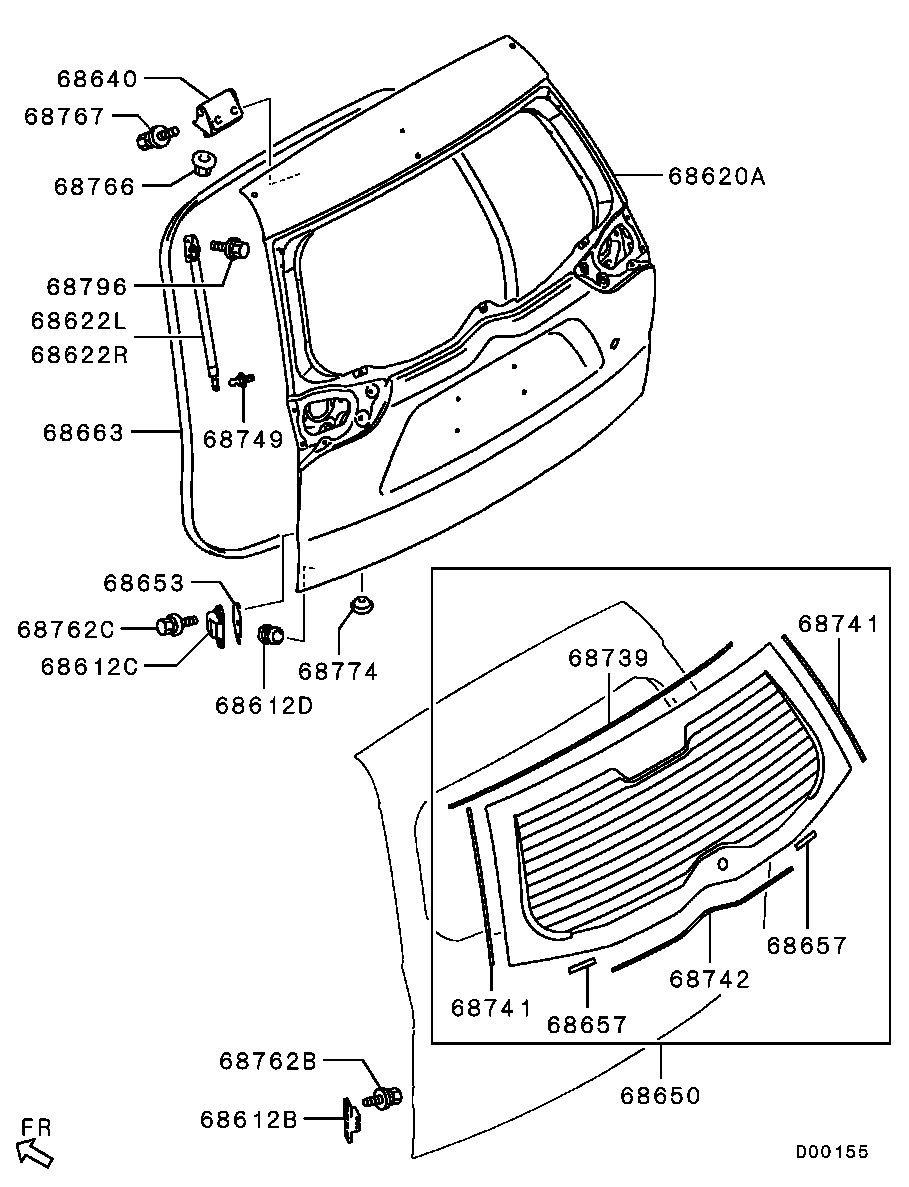 【68741】5805A209 Weatherstrip, t/gate glass