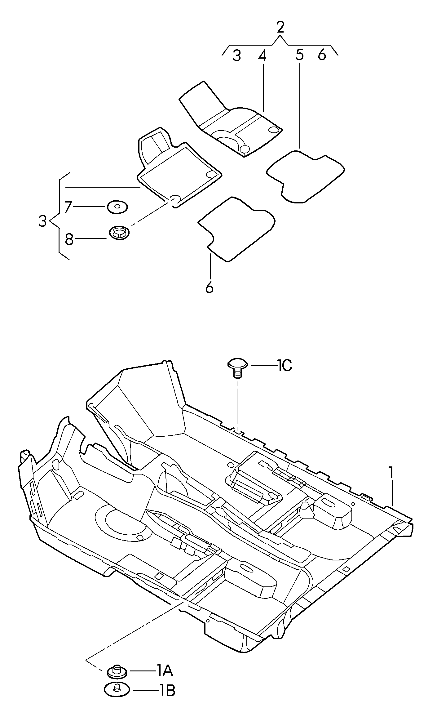 【2】5C1863011CEOM 1 set of floor mats ti black/black