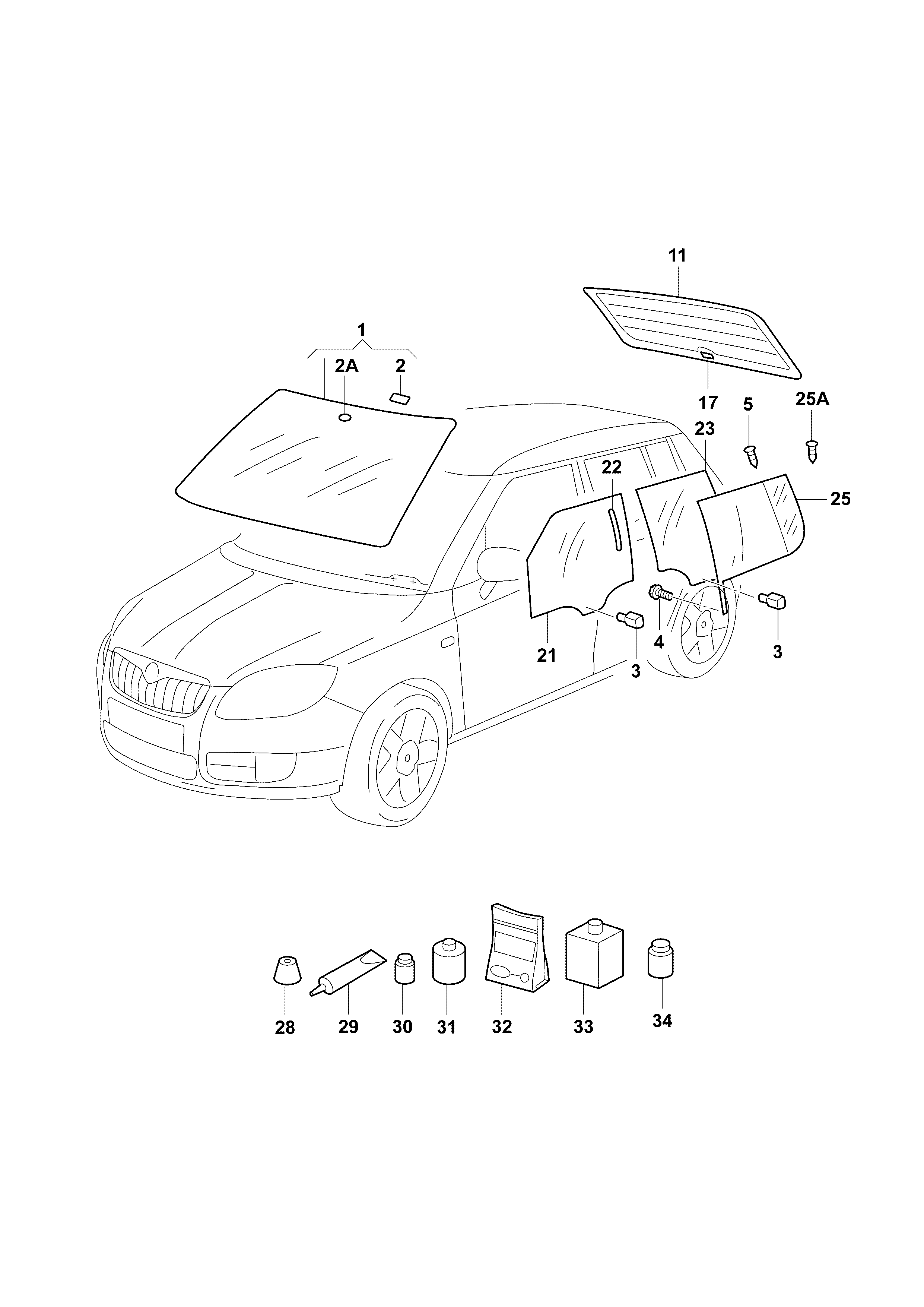 【25】5JD845209B Glass, fixed door w/weatherstrip