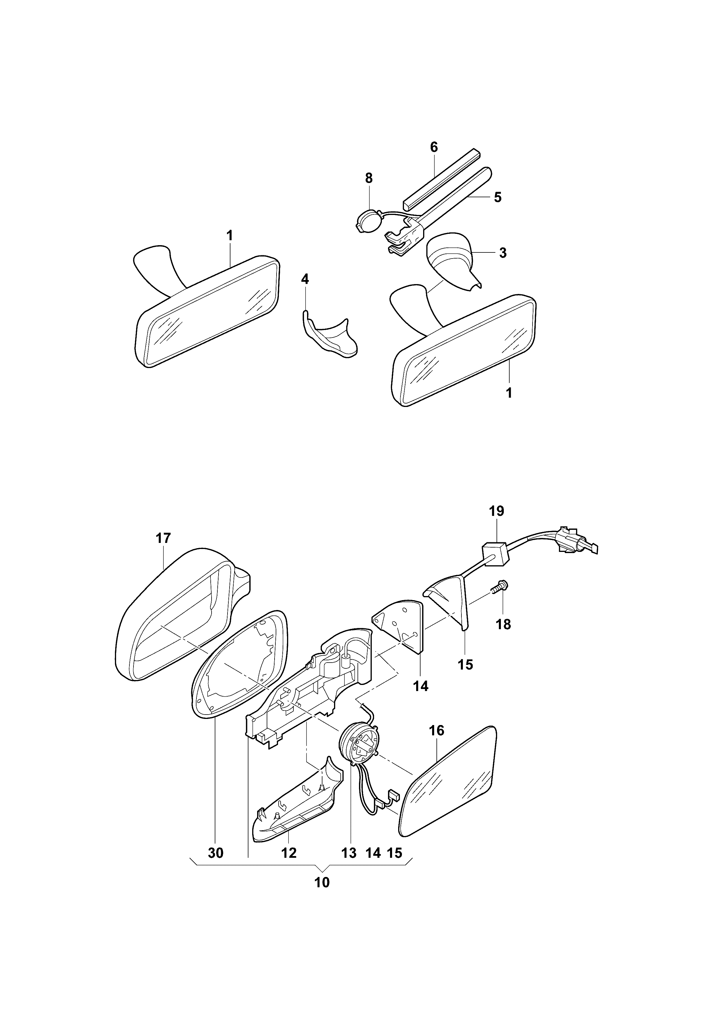 【1】56D857511ASMA Mirror, automatic anti-glare bright black/pearl ash