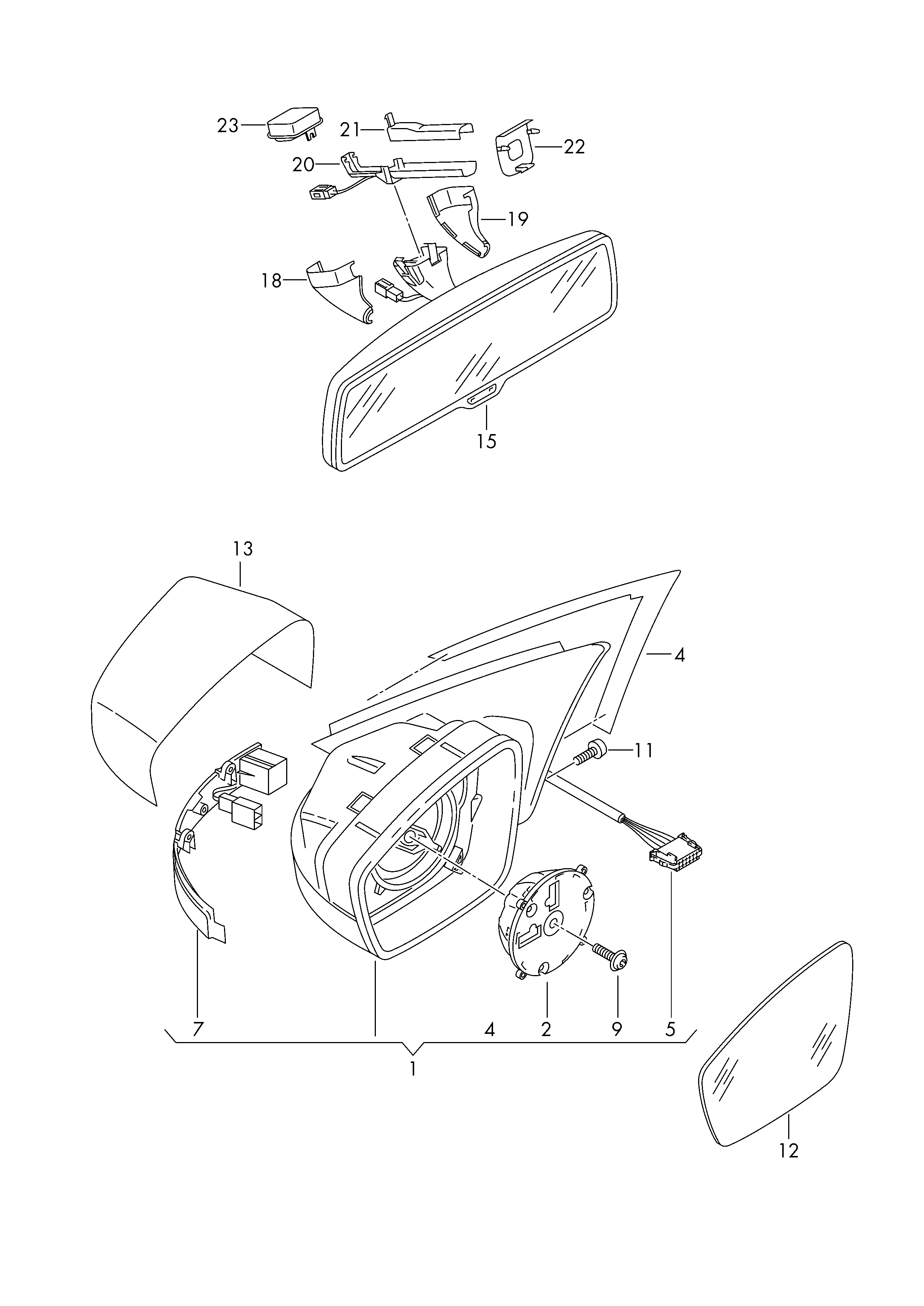 【15】1K0857511DSMA Mirror, automatic anti-glare bright black/pearl ash