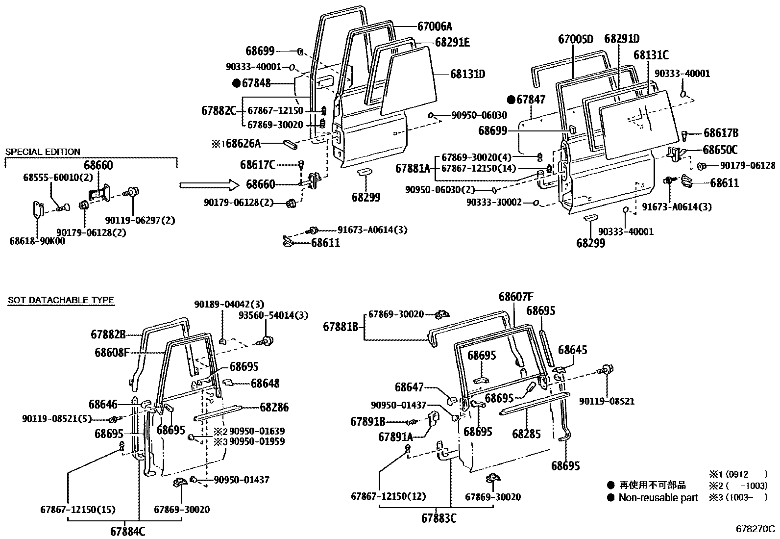 【67882C】6788260041 WEATHERSTRIP, BACK DOOR, NO.2