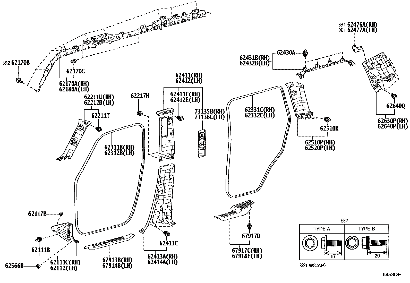 【62414A】624140G030C0 GARNISH, CENTER PILLAR, LOWER LH