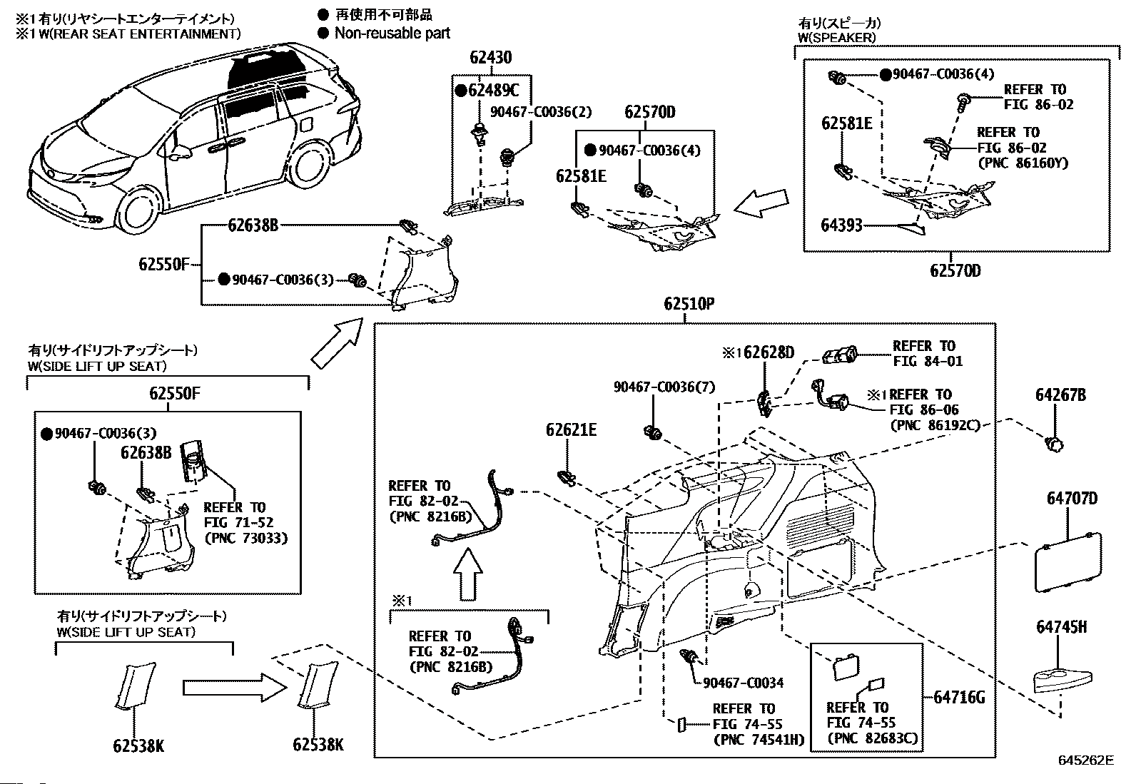 【62489C】6248960020 CLIP, ROOF SIDE INNER GARNISH