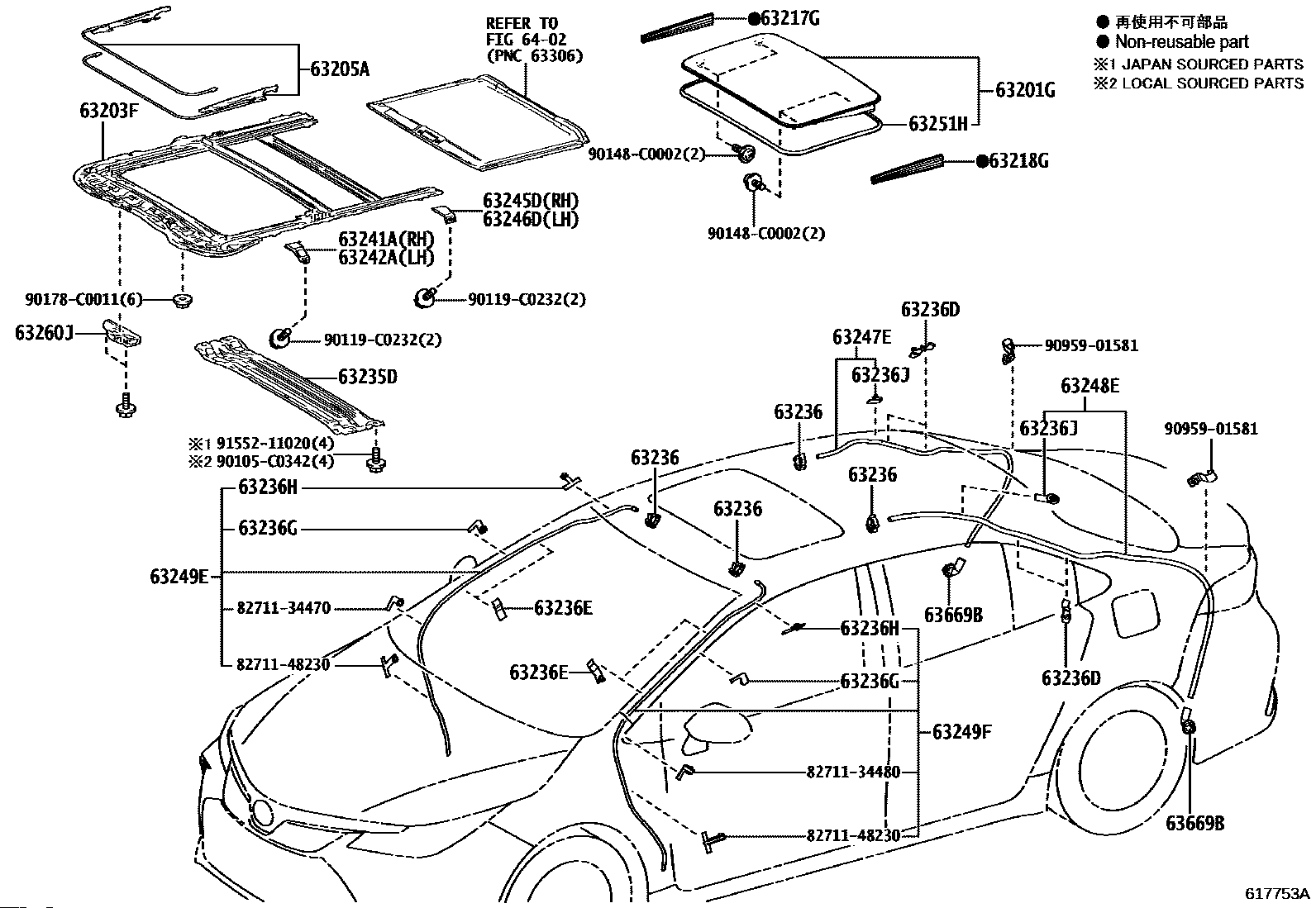 【63251H】6325102150 Weatherstrip, sliding roof