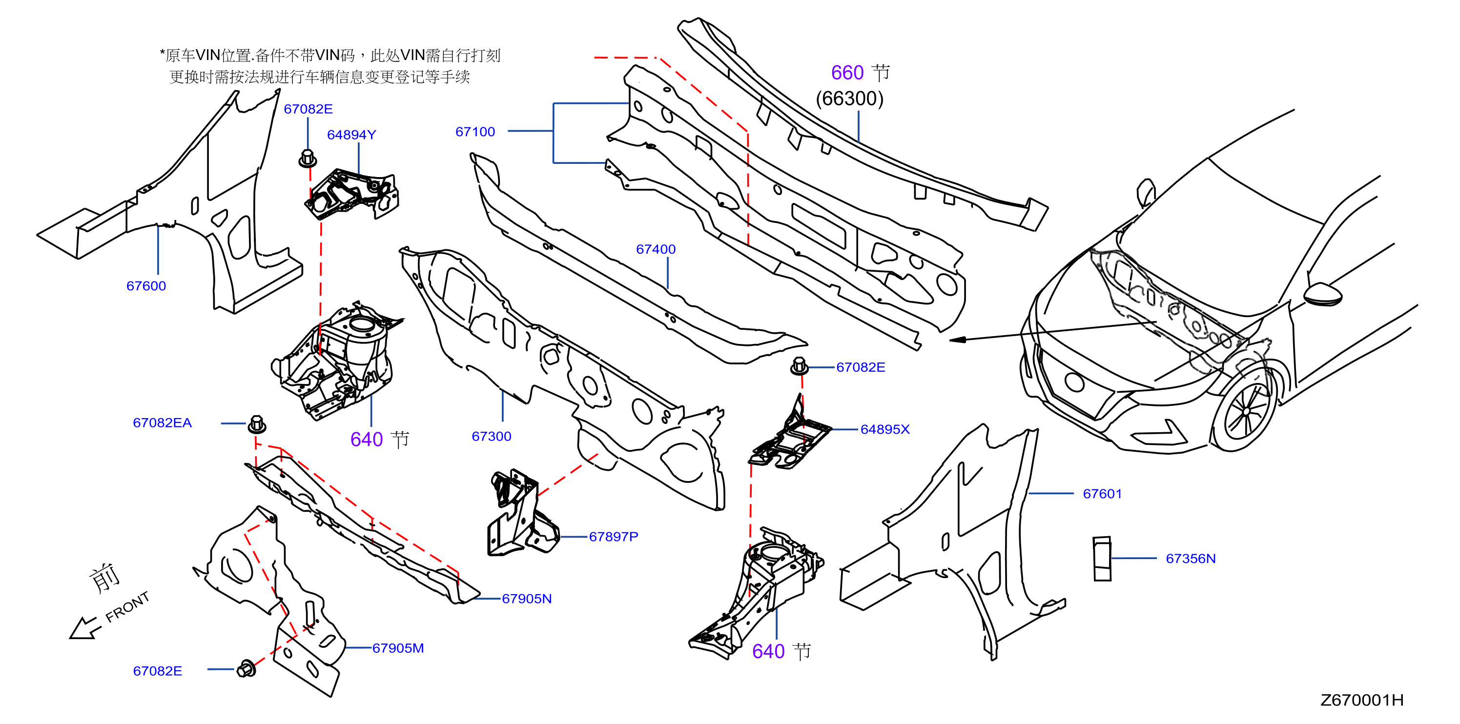 【67905N】678116LA0A Insulator-dash lower, fr upr