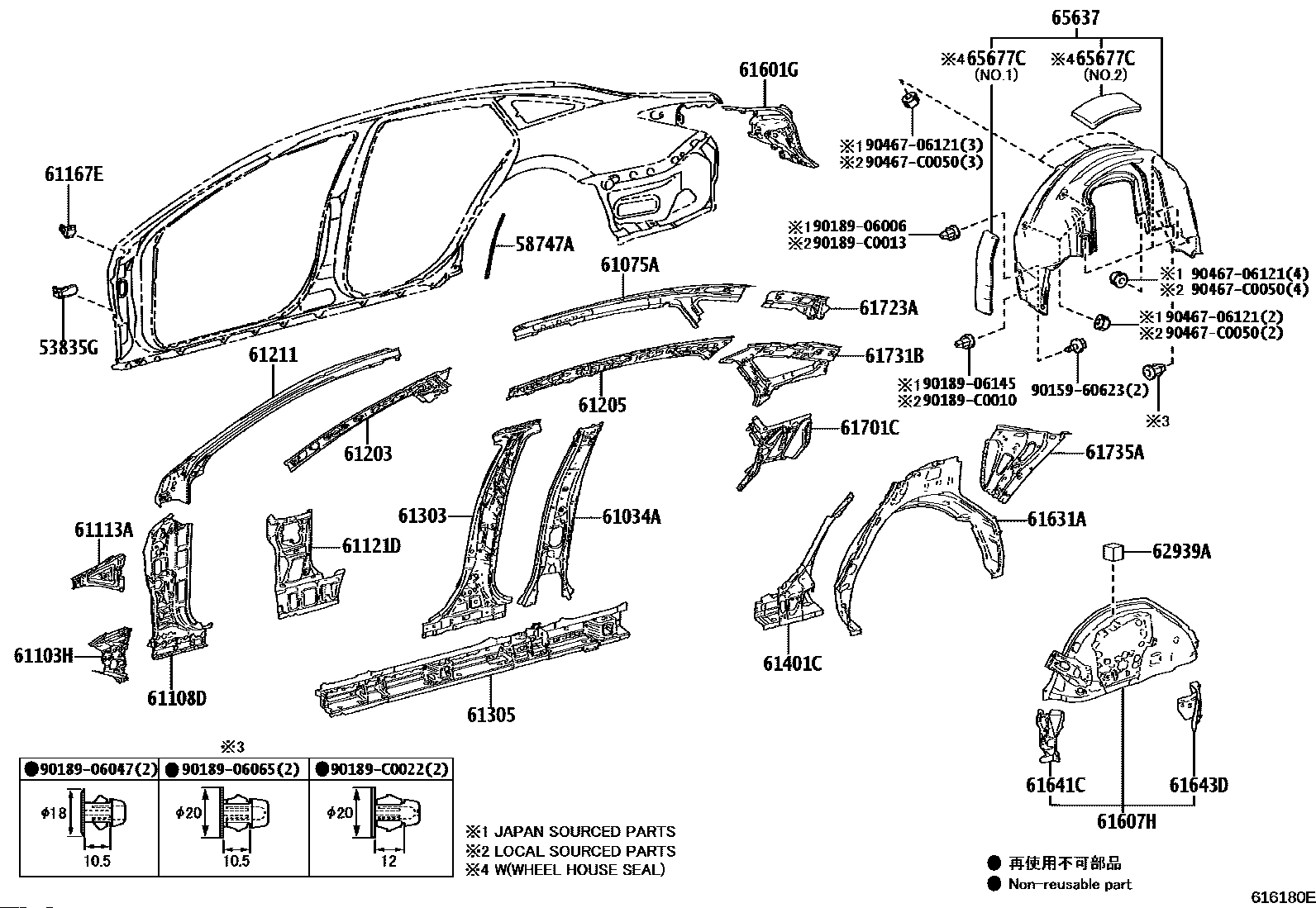 【61601G】6160107090 Panel sub-assy, rear body, rear rh