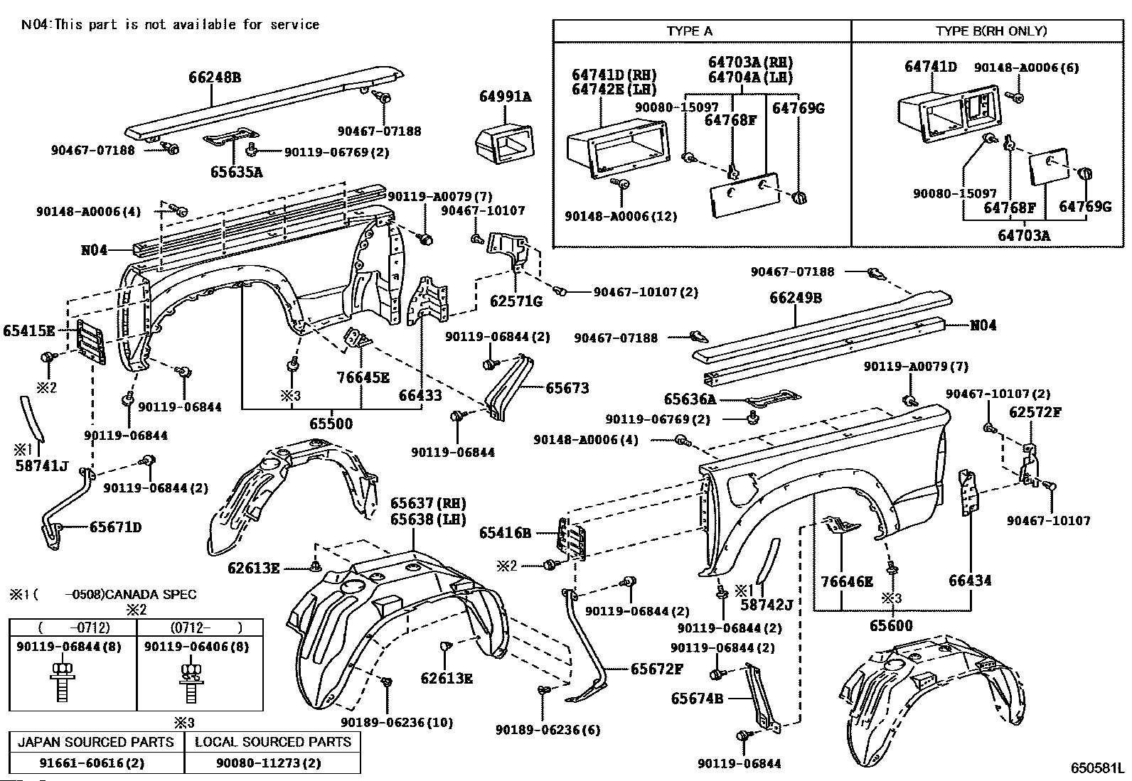 【65638】6563804070 LINER, REAR WHEEL HOUSE, LH