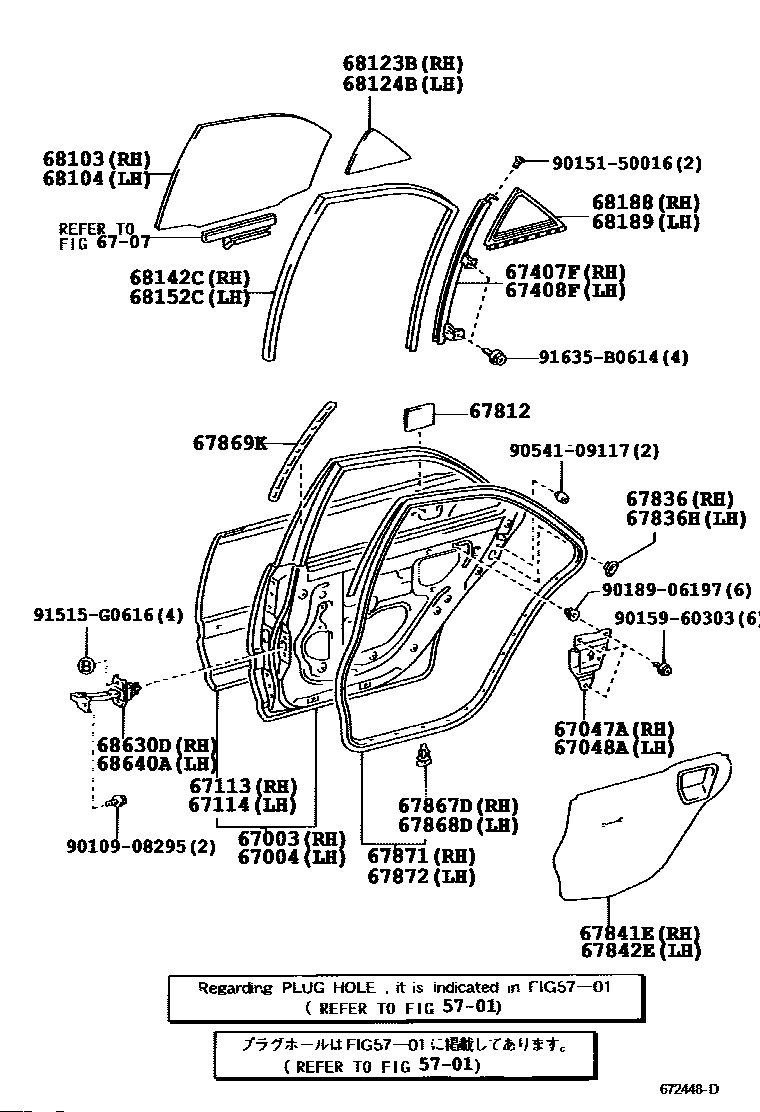【67871】6787133060 WEATHERSTRIP, REAR DOOR, RH