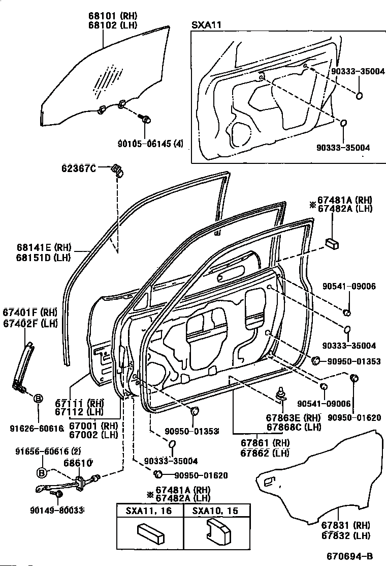 【68102】6810242040 GLASS SUB-ASSY, FRONT DOOR, LH