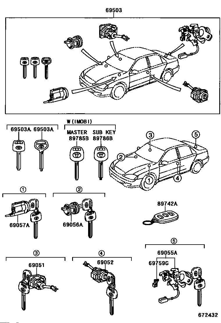【69052】6905233230 CYLINDER & KEY SET, DOOR LOCK, LH