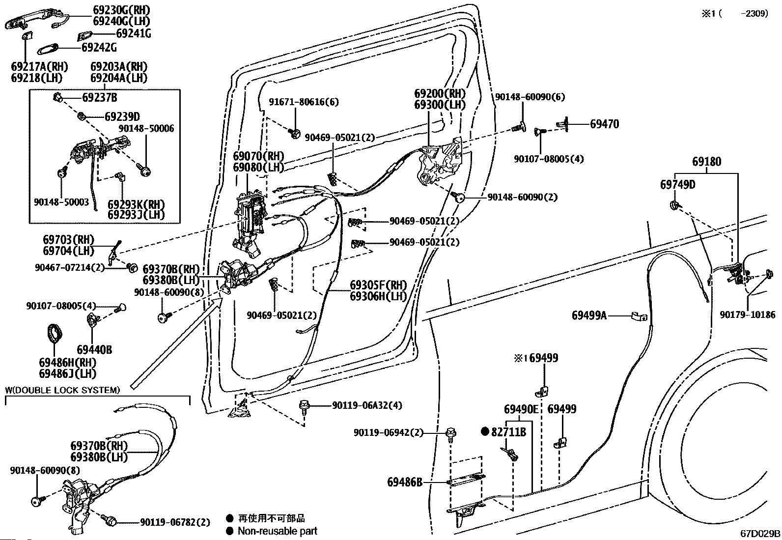 【69499】6949928020 Clip, slide door half open stopper cable