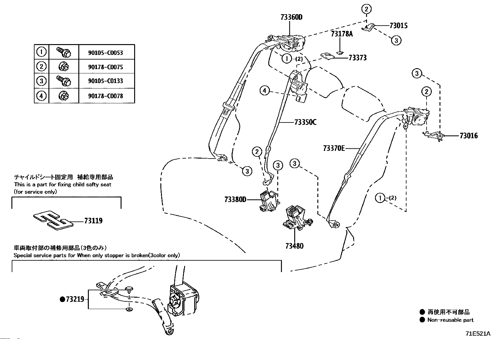 【73370E】733700E170C0 BELT ASSY, RR SEAT