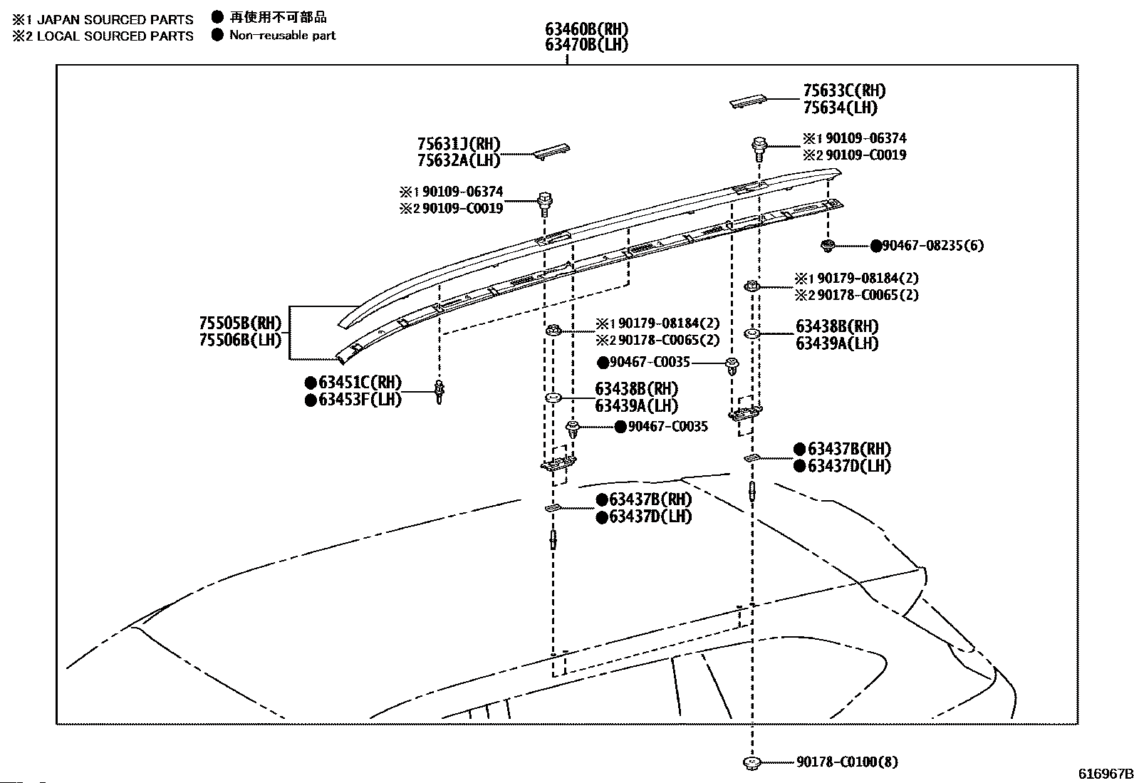 【75634】756340E020 Cover, roof trim, no.2, rh/lh