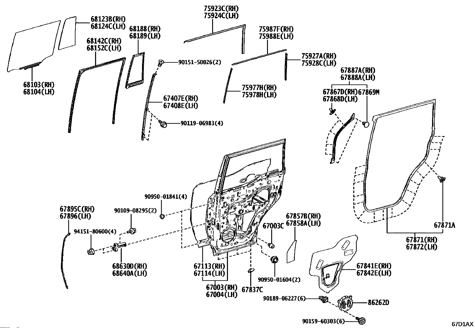 【68104】6810460550 GLASS SUB-ASSY, RR