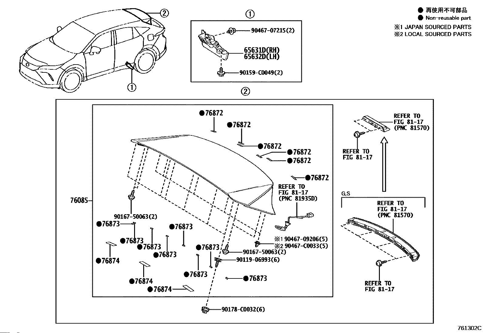 【76085】760850E927 SPOILER SUB-ASSY, REAR
