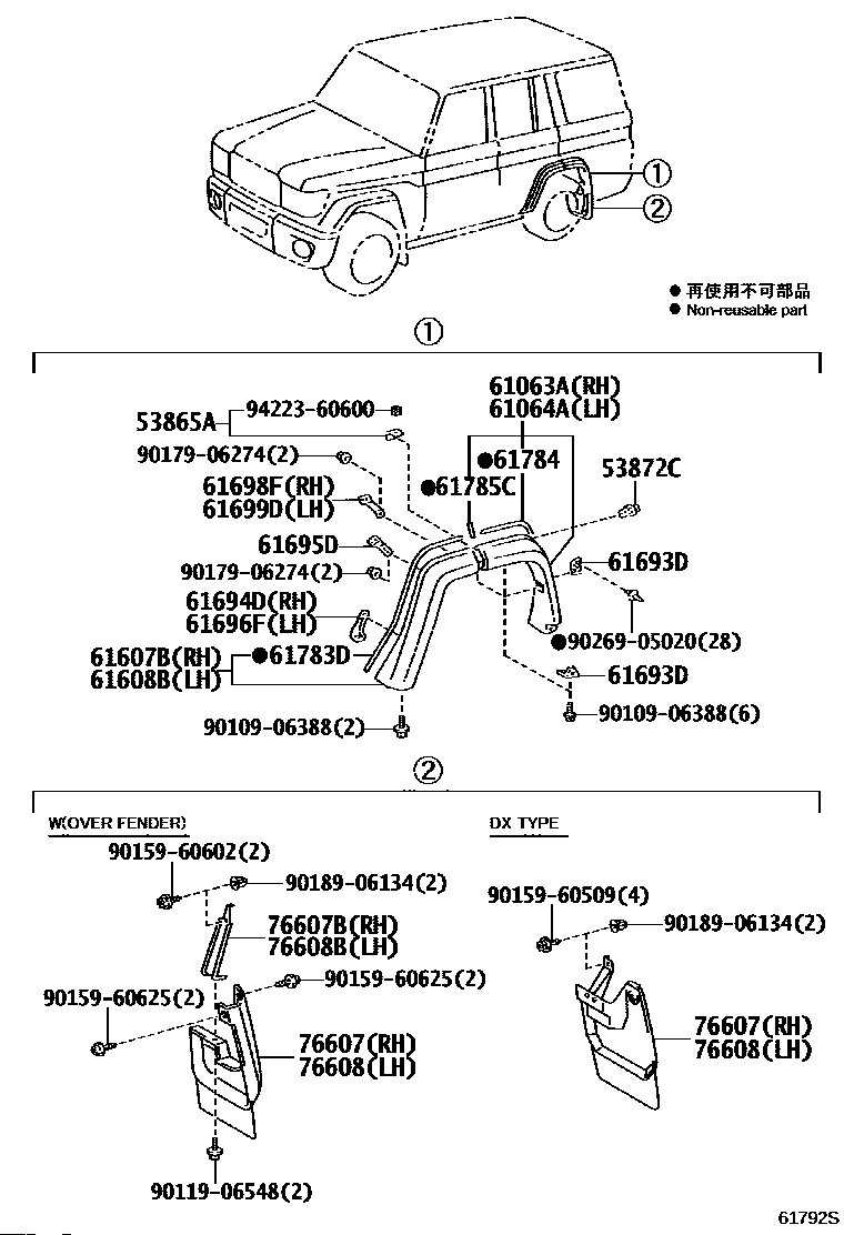 【61607B】6160760905 EXTENSION SUB-ASSY, REAR WHEEL OPENING, RH