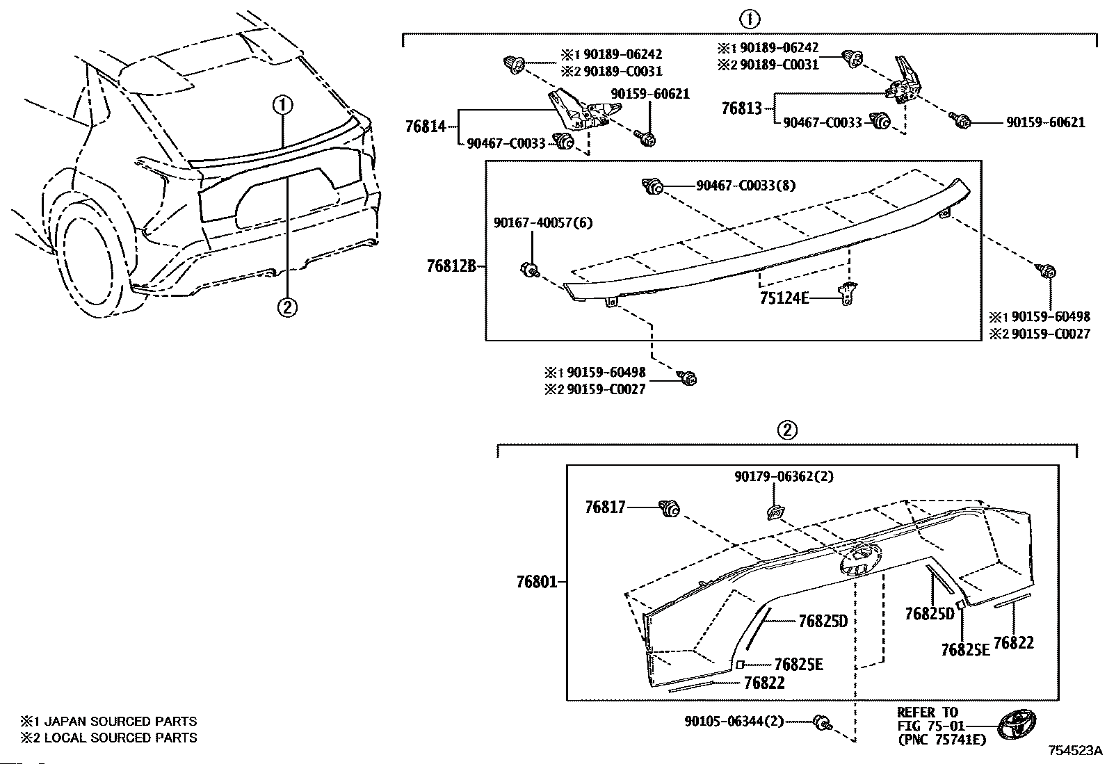 【76812B】768120R130 Garnish, luggage compartment door, no.2