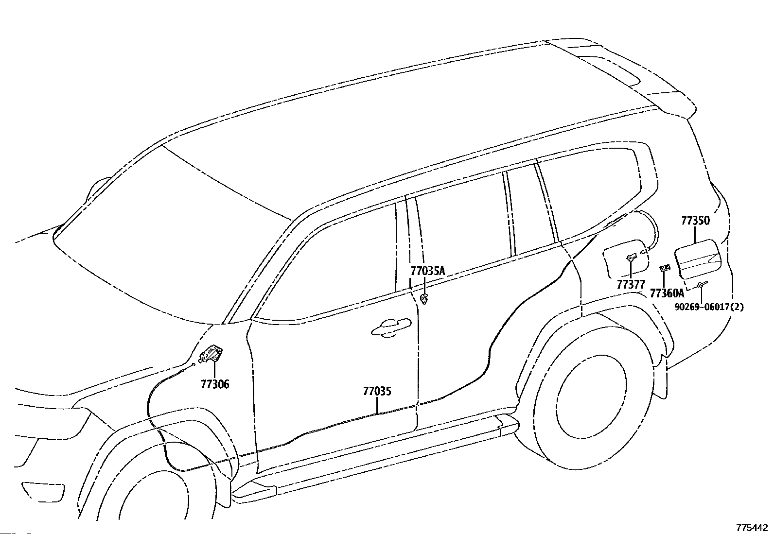 【77035】7703560240 CABLE SUB-ASSY, FUEL LID LOCK CONTROL