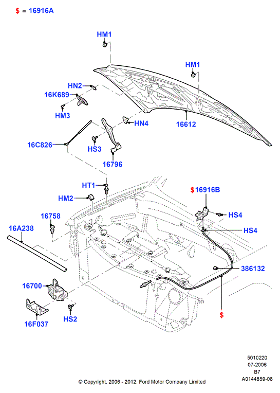 【16916B】7L1Z16916AD CABLE ASSY - HOOD CONTROL