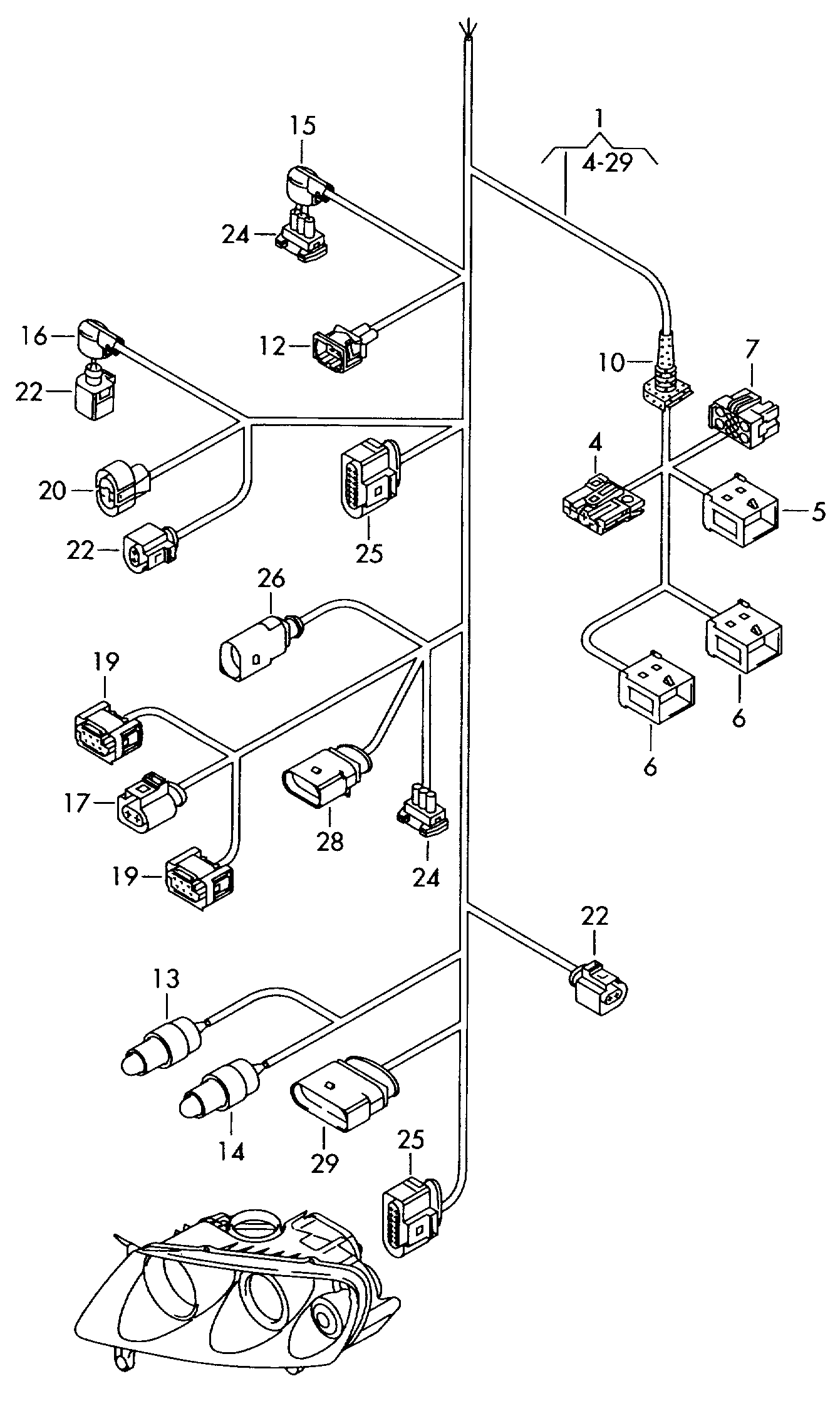 【14】8D0971273 Harness, side lamp