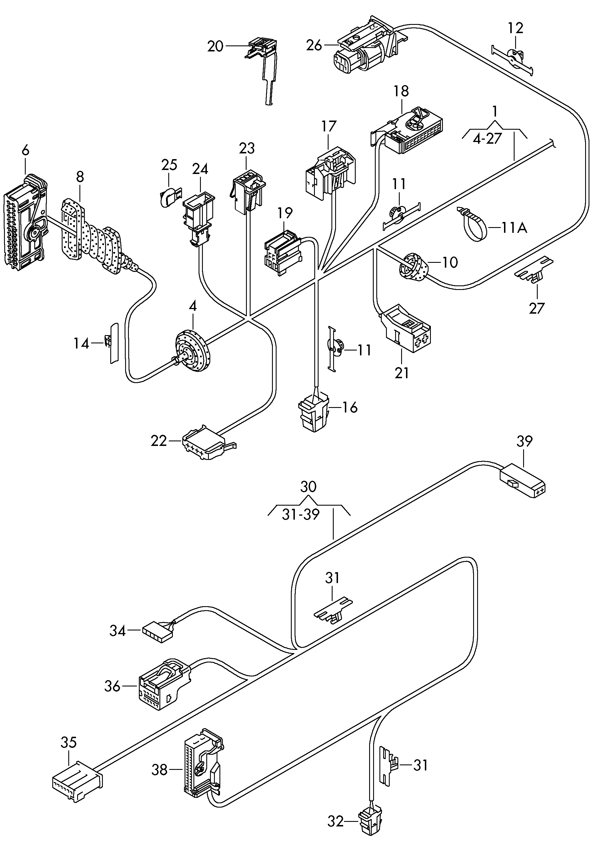 【14】6Q0971848P Bracket, cable for hole/material thickness: fit as desired: