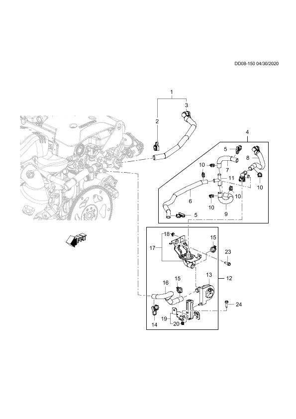 【012】23296501 Hose, heater assist water pump inlet (incl 13-20)