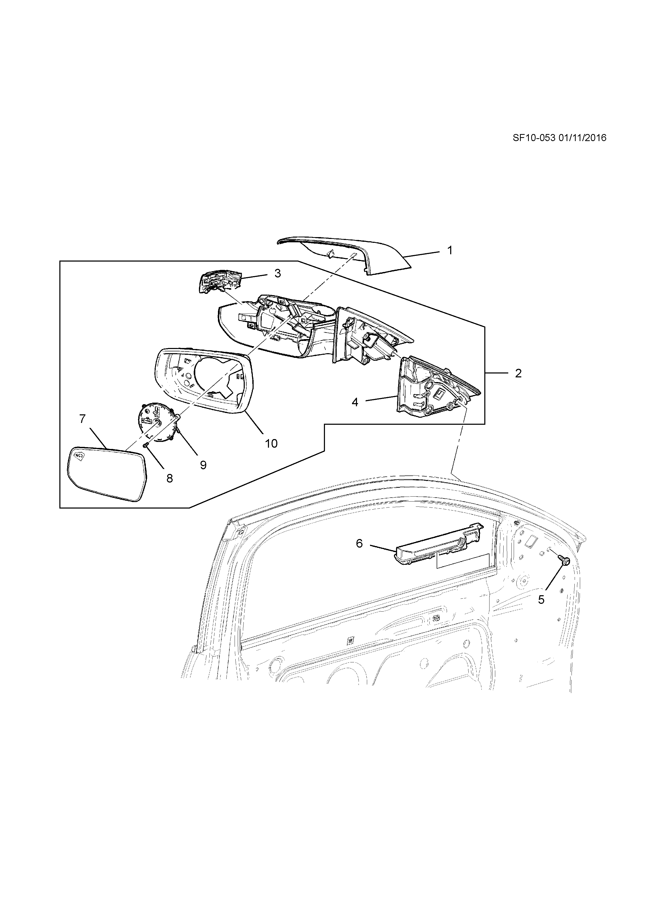 Mirror, outer (including 3,4, 7-10)