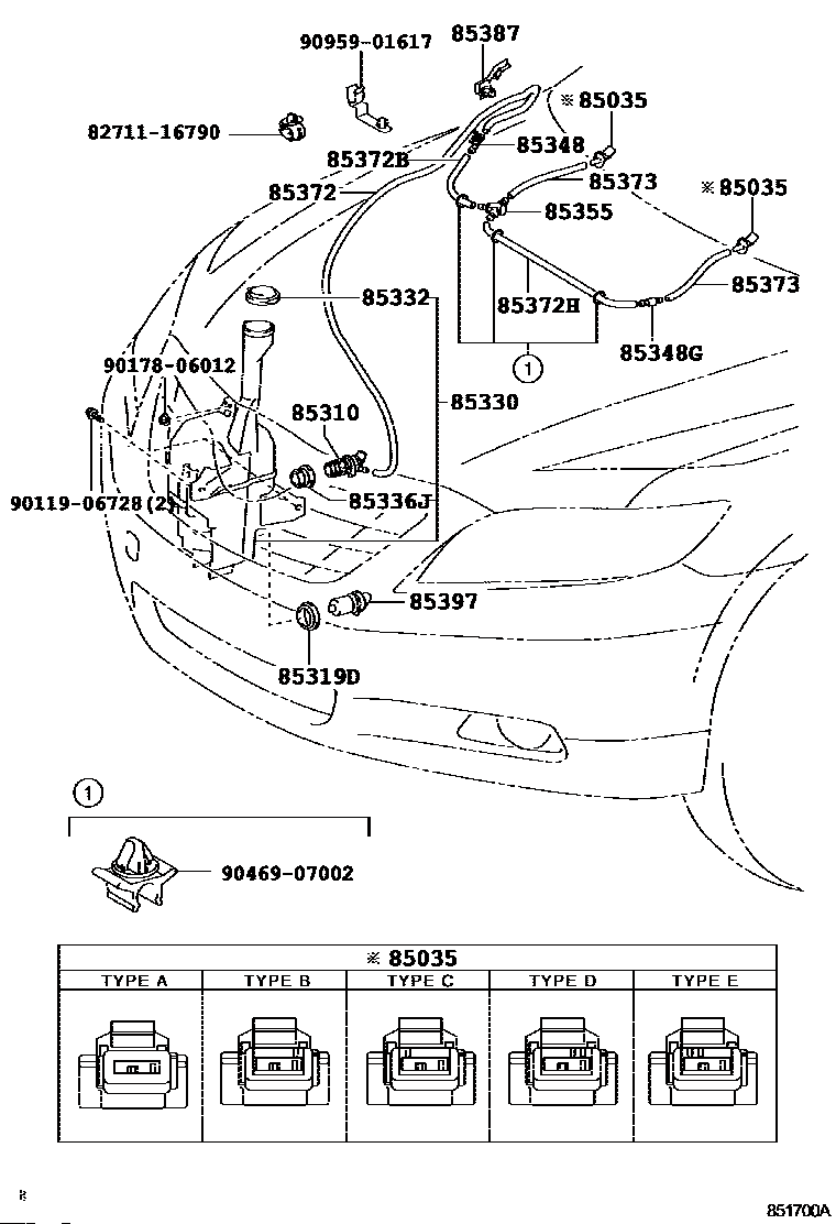 【85035】8538130200 NOZZLE SUB-ASSY, WASHER