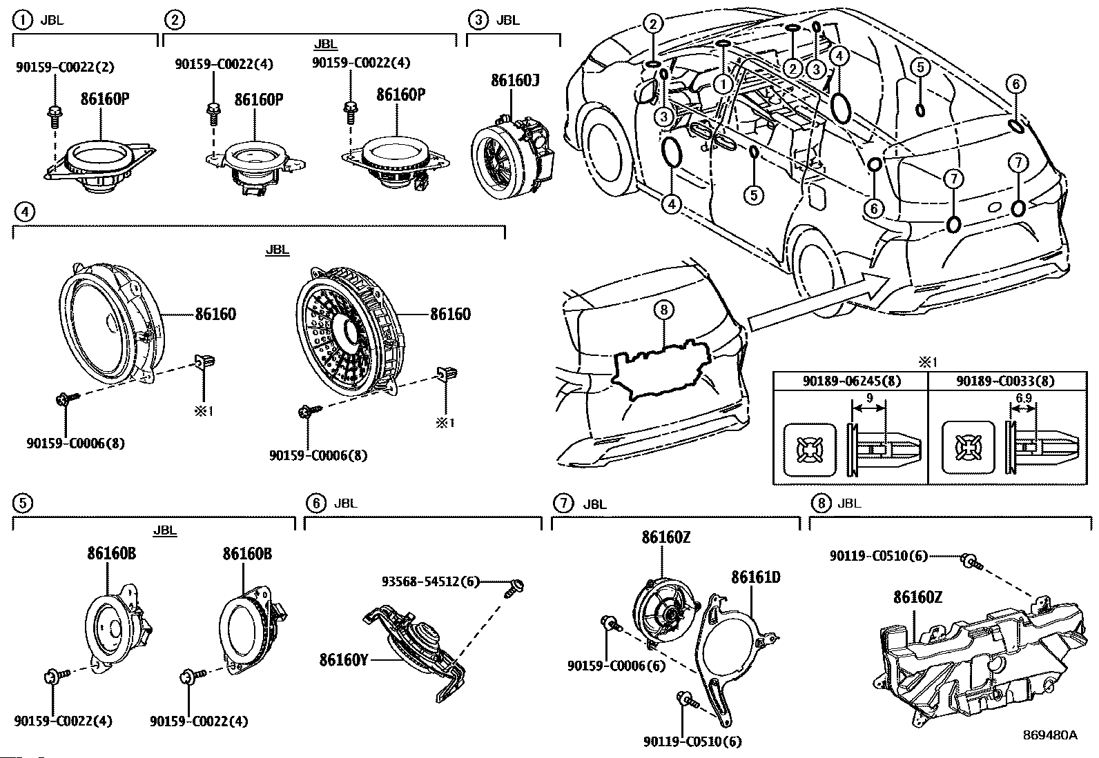 【86160P】8616006A50 SPEAKER ASSY, REAR NO.2