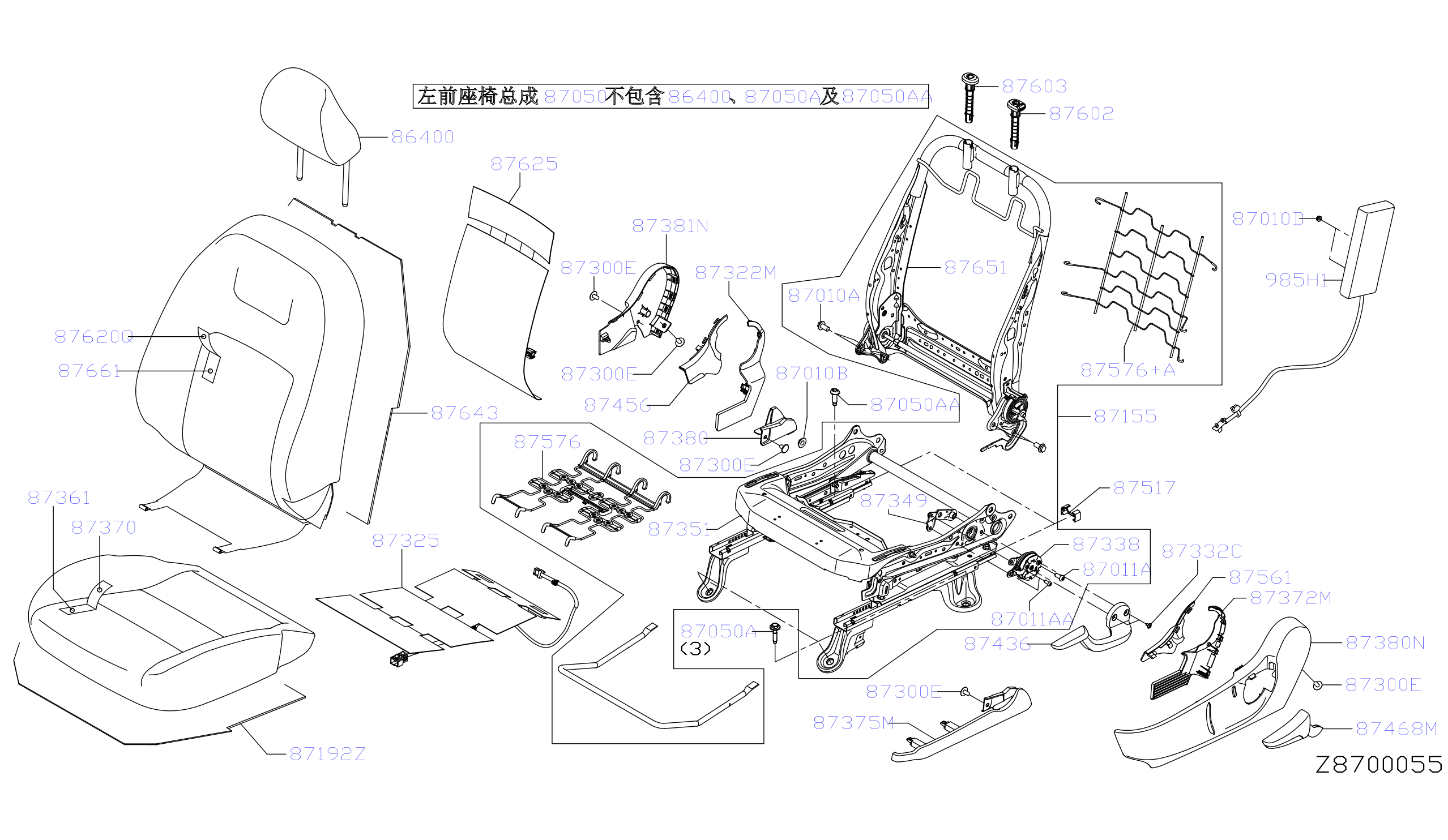 【87370】873705RF7A Skin l, fr seat