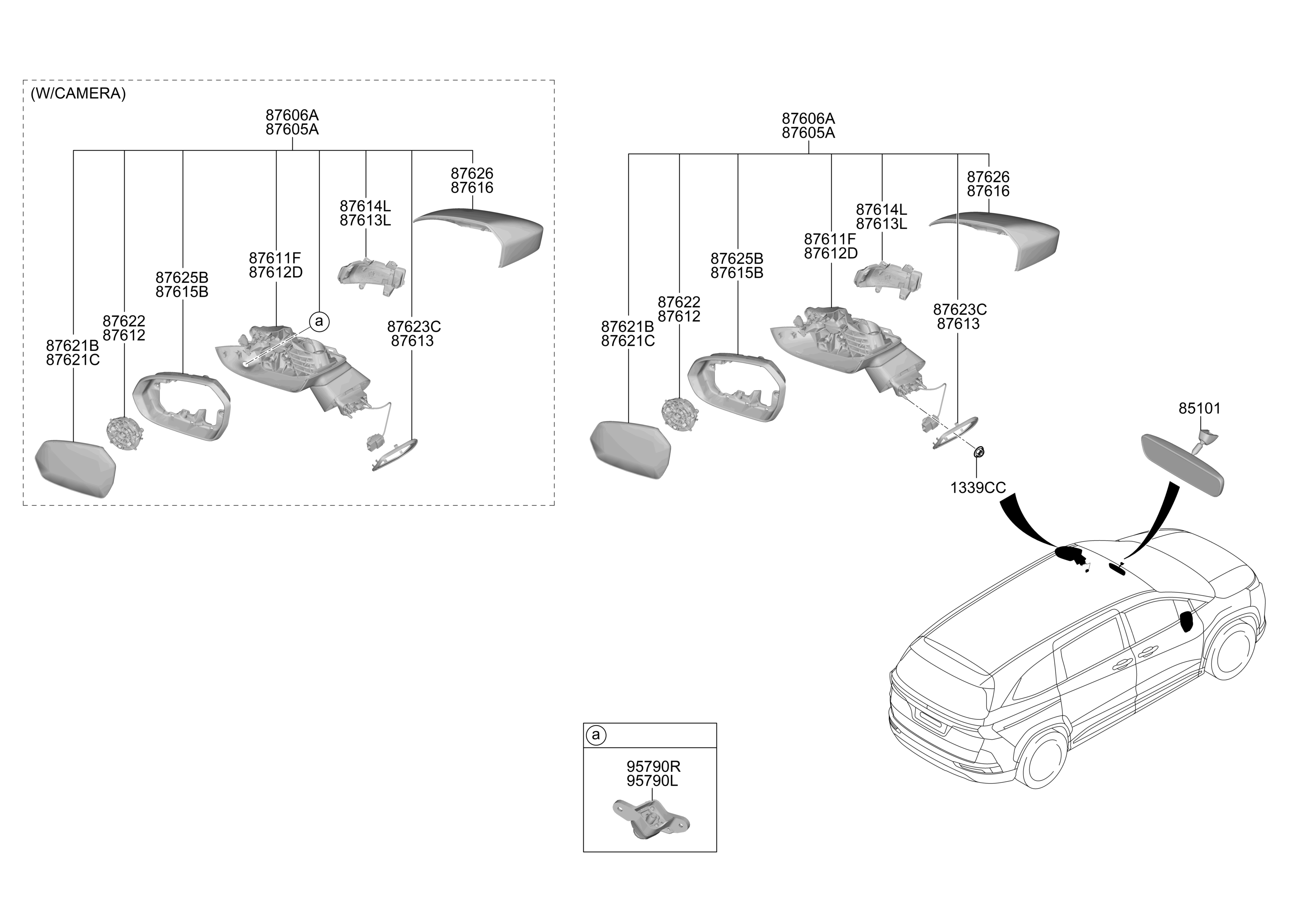 【87605A】87610O3050 MIRROR ASSY-OUTSIDE RR VIEW,LH