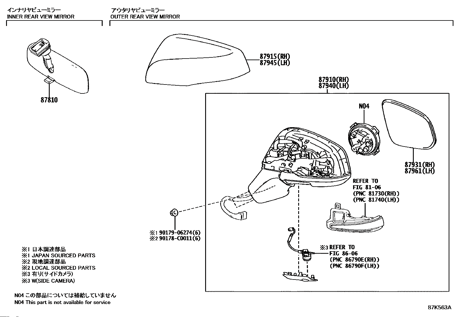 【87940】879400A160 MIRROR ASSY, OUTER REAR VIEW, LH